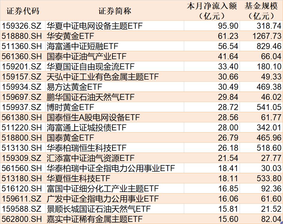 截至3月17日,本月資金凈流入額居前20的ETF名單如下: